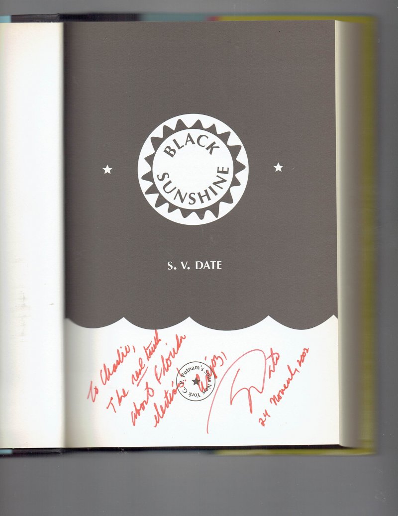 For sale Black Sunshine by S. V. Date (2002, Hardcover) Signed Book. Rare autograph to obtain. 100% Authentic. Book will be accompanied by our COA.