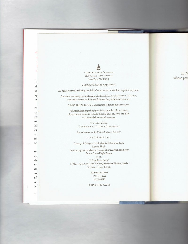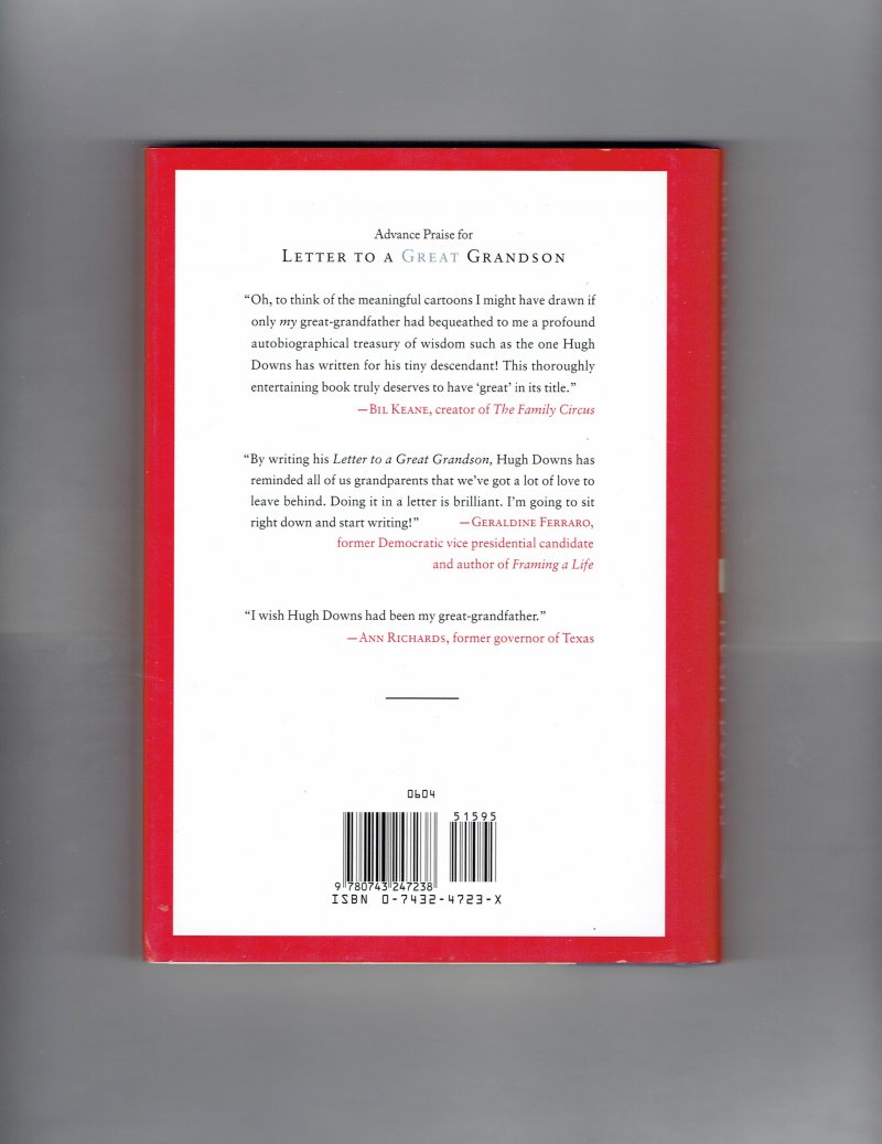 For Sale Great Grandson A Message of Love, Advice, and Hopes for the Future by Hugh Downs (2004, Hardcover) Signed book. 100% Authentic. Book will be accompanied by our COA.