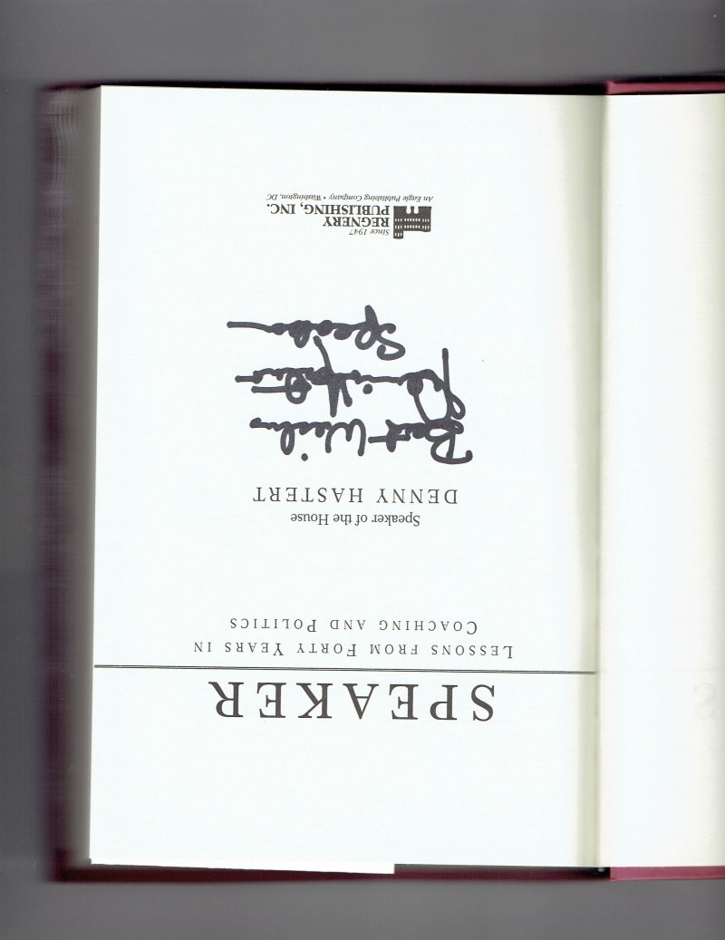 For Sale Speaker Lessons from Forty Years in Coaching & Politics by Dennis Hastert Signed. Rare autograph to obtain. 100% Authentic. Book will be accompanied by our COA.