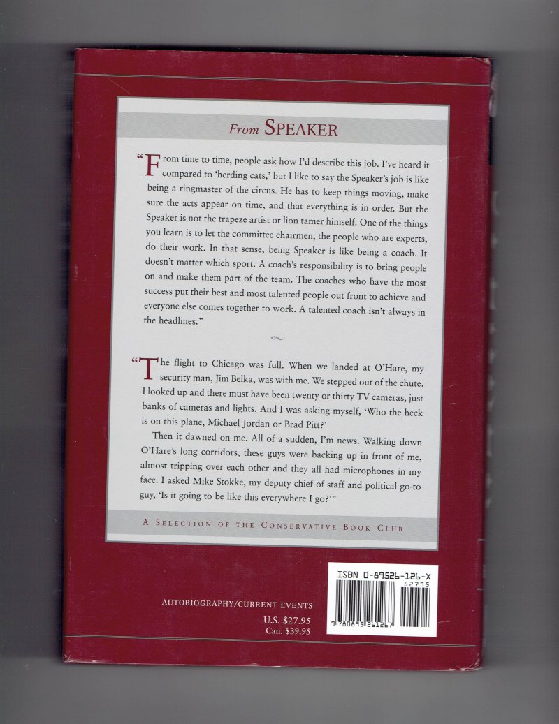Speaker Lessons from Forty Years in Coaching & Politics by Dennis Hastert Signed