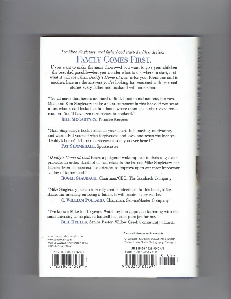 For Sale Daddy's Home at Last By Mike Singletary (1998 Hardcover) Signed Autographed HOF. 100% Authentic. Book will be accompanied by our COA.