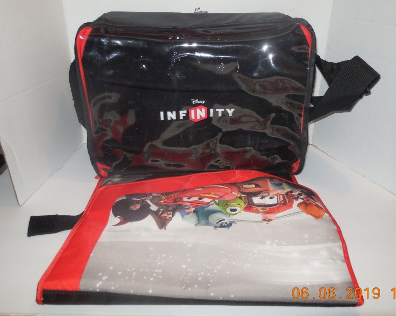 more great Video Games @ www.everything-collectibles.com Disney Infinity CARRYING CASE BAG w shoulder strap. its in good used condition as you can see from the pictures if you have any further questions please don't hesitate to ask! if your order is over $50 Shipping is FREEE within The U.S.!!!