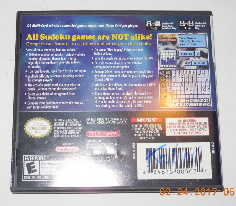 more great Video Games @ www.everything-collectibles.com Nintendo DS Ultimate Puzzle Games -- Sudoku Edition Video Game Cart Only. This Video Game is in good condition as you can see from the picture tested and works. if you have any further questions please don't hesitate to ask! if your order is over $50 Shipping is FREEE within The U.S.!!!