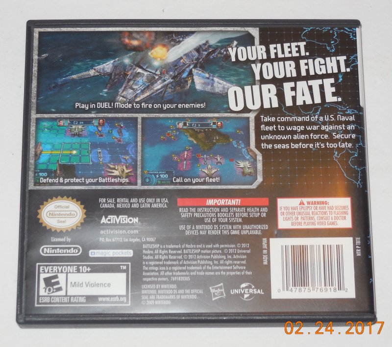more great Video Games @ www.everything-collectibles.com Nintendo DS Battleship Video Game Complete. This Video Game is in good condition as you can see from the picture tested and works. if you have any further questions please don't hesitate to ask! if your order is over $50 Shipping is FREEE within The U.S.!!!